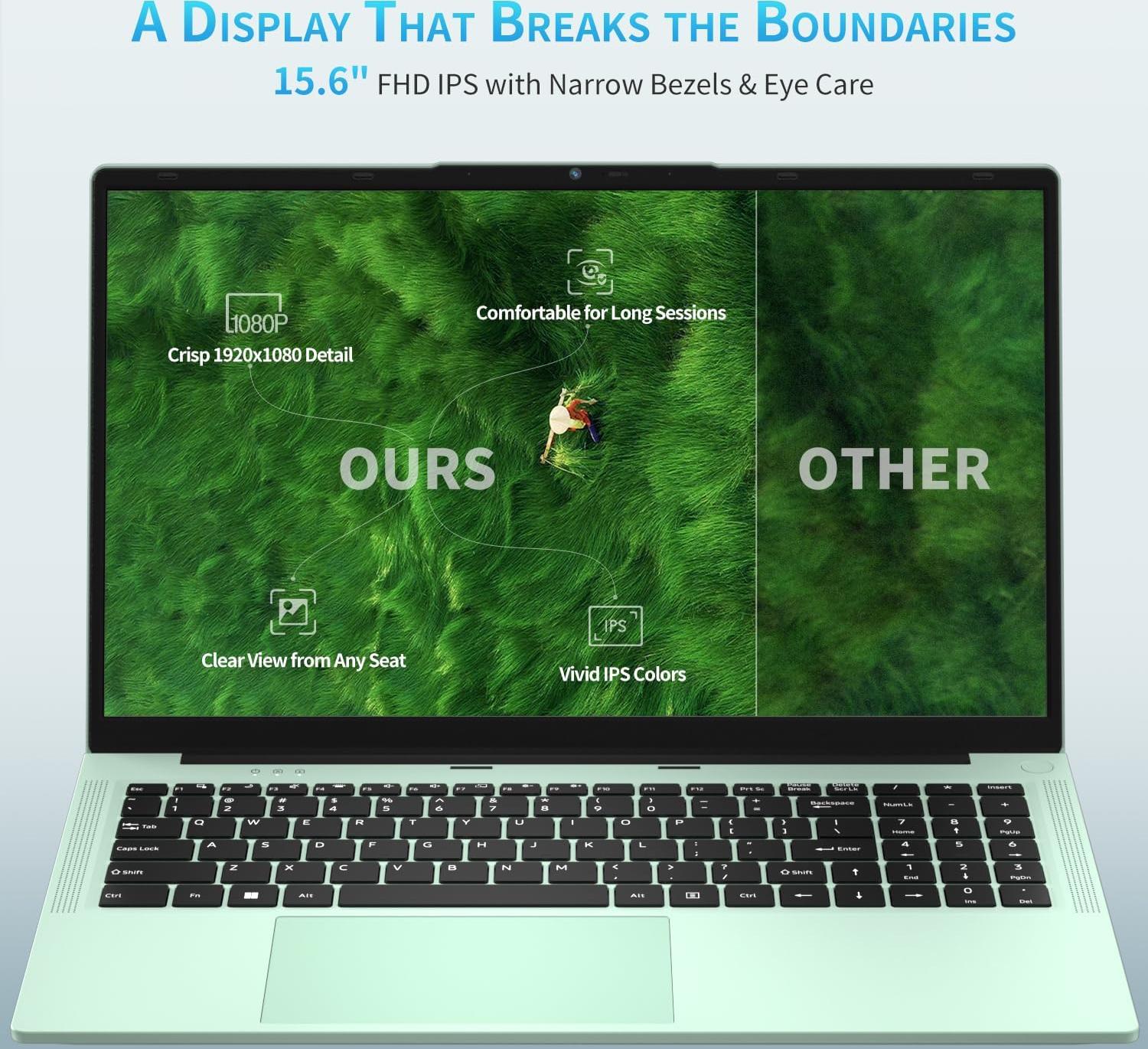 NAIKLULU Processeur N150 (1,2 à 3,6 GHz), 15,6 Pouces 16GB RAM 1TB SSD 2026, FHD 1920x1080P | Clavier Rétroéclairé | 6000mAh / 46.2Wh | Webcam